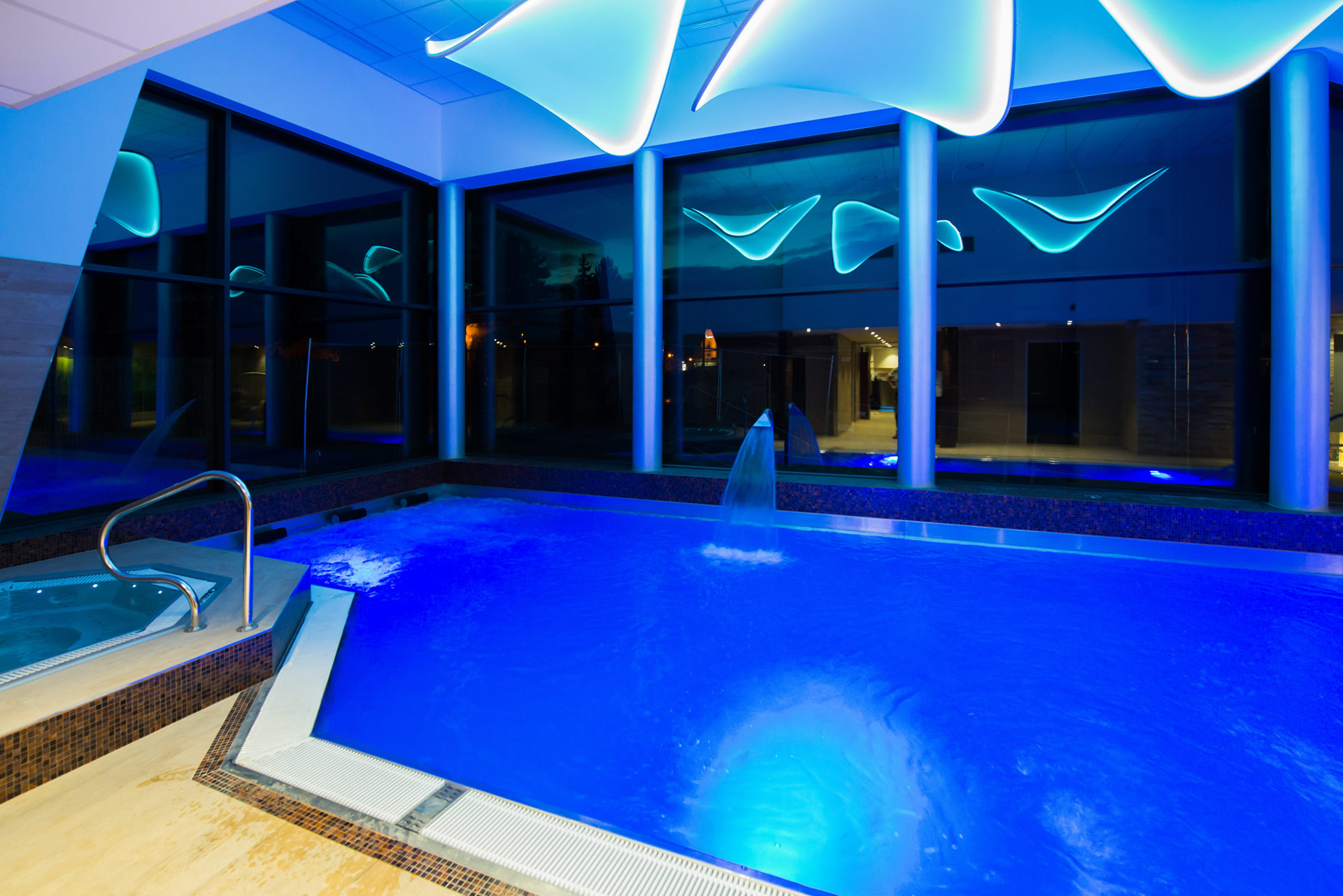 Lit massant tubulaire, cascade et buses de massage viennent agrémenter cette très belle installation aux trois frontières.