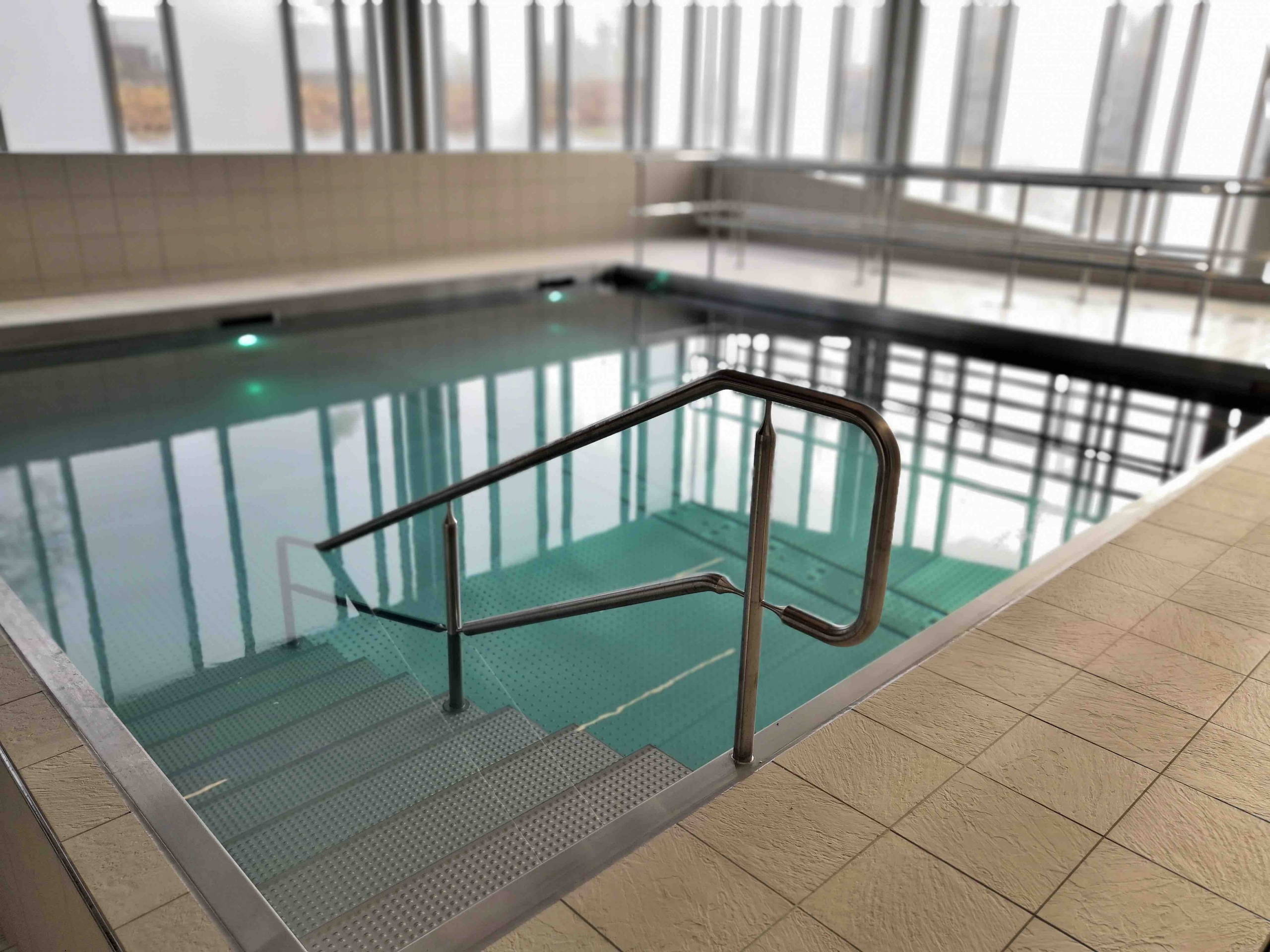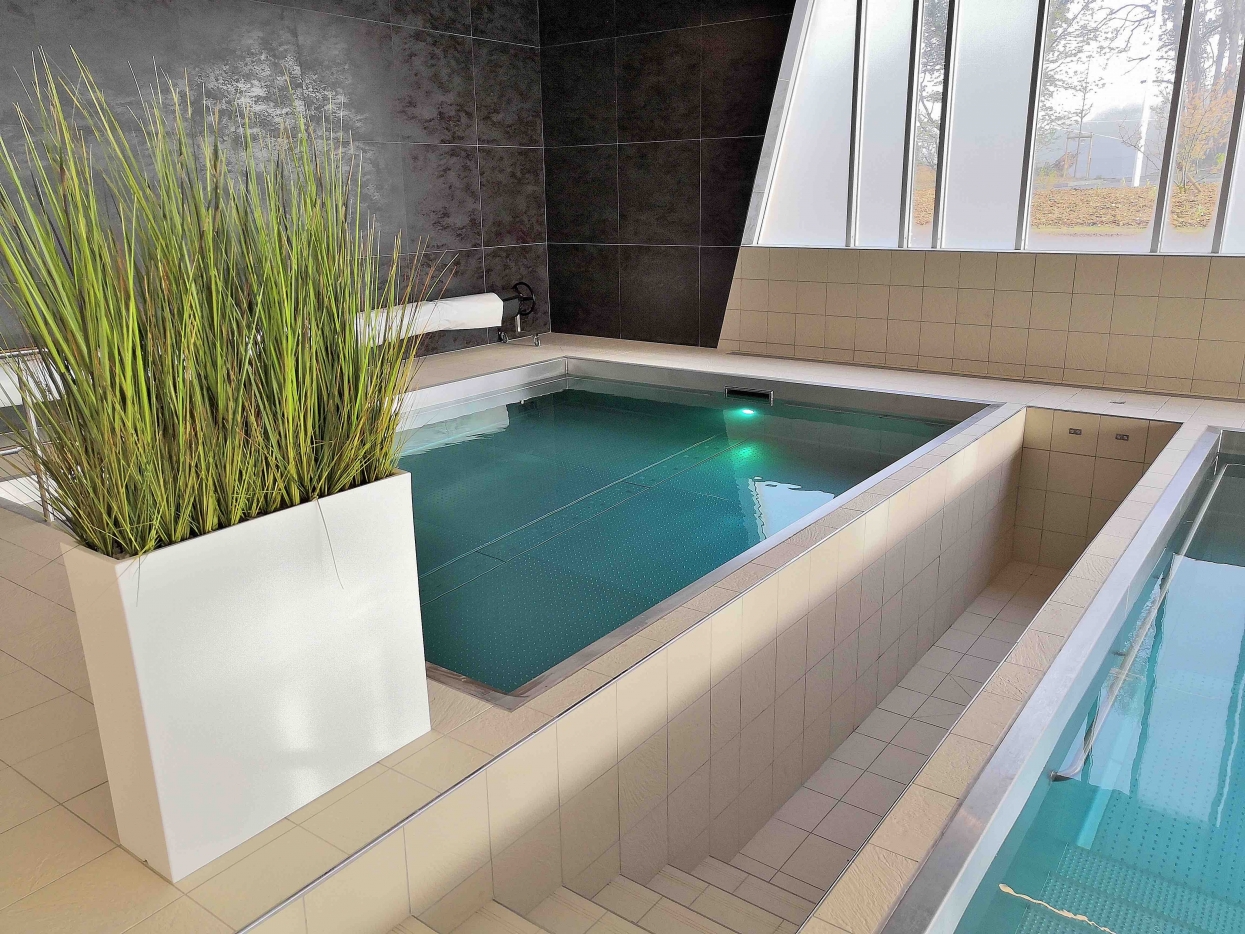 Réalisation de 2 bassins en inox à skimmers pour la salle de balnéothérapie de l’institut. Le grand bassin (8 x 6 m) est doté d’un fond mobile. Ces équipements accueillent les patients de l’institut pour des soins de rééducation.